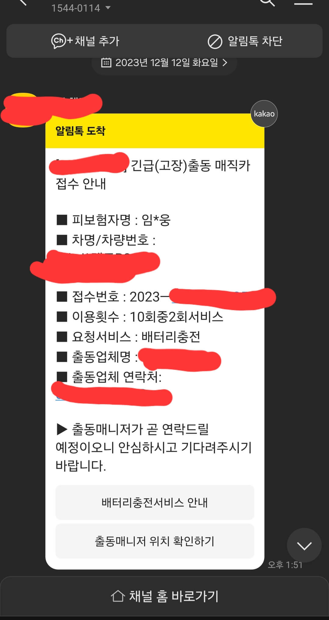 보험계약과 보험사마다 다르지만 1년 이용 시 6회~10회까지 출동서비스가 가능하니 부담 없이 이용하시면 됩니다.