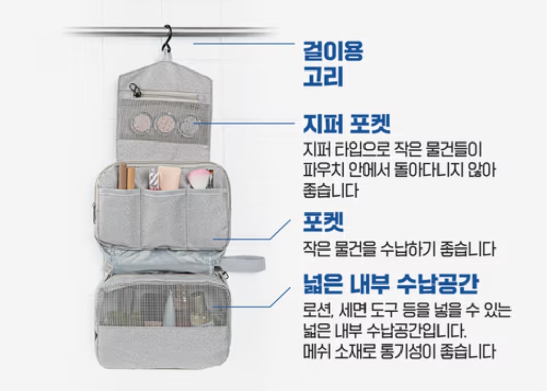 옷, 속옷, 세면도구를 깔끔하게 정리할 수 있어 여행 갈 때 필수템입니다.