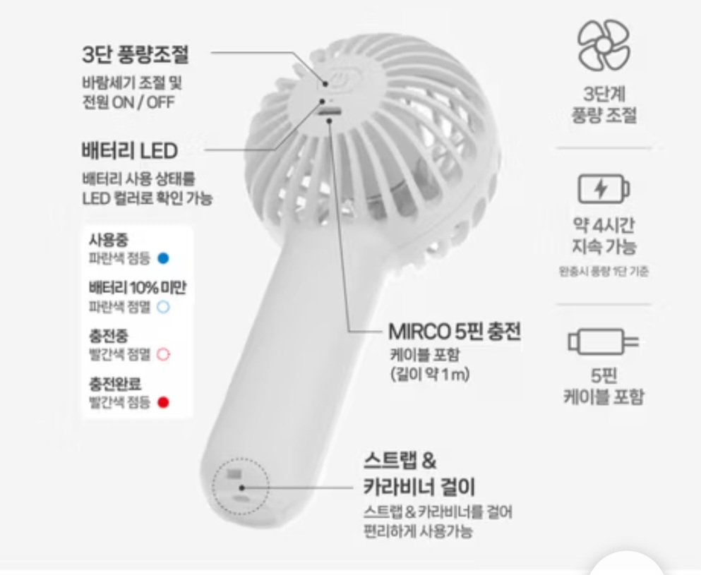 여름 필수템으로 배터리가 오래가고 바람도 강합니다.