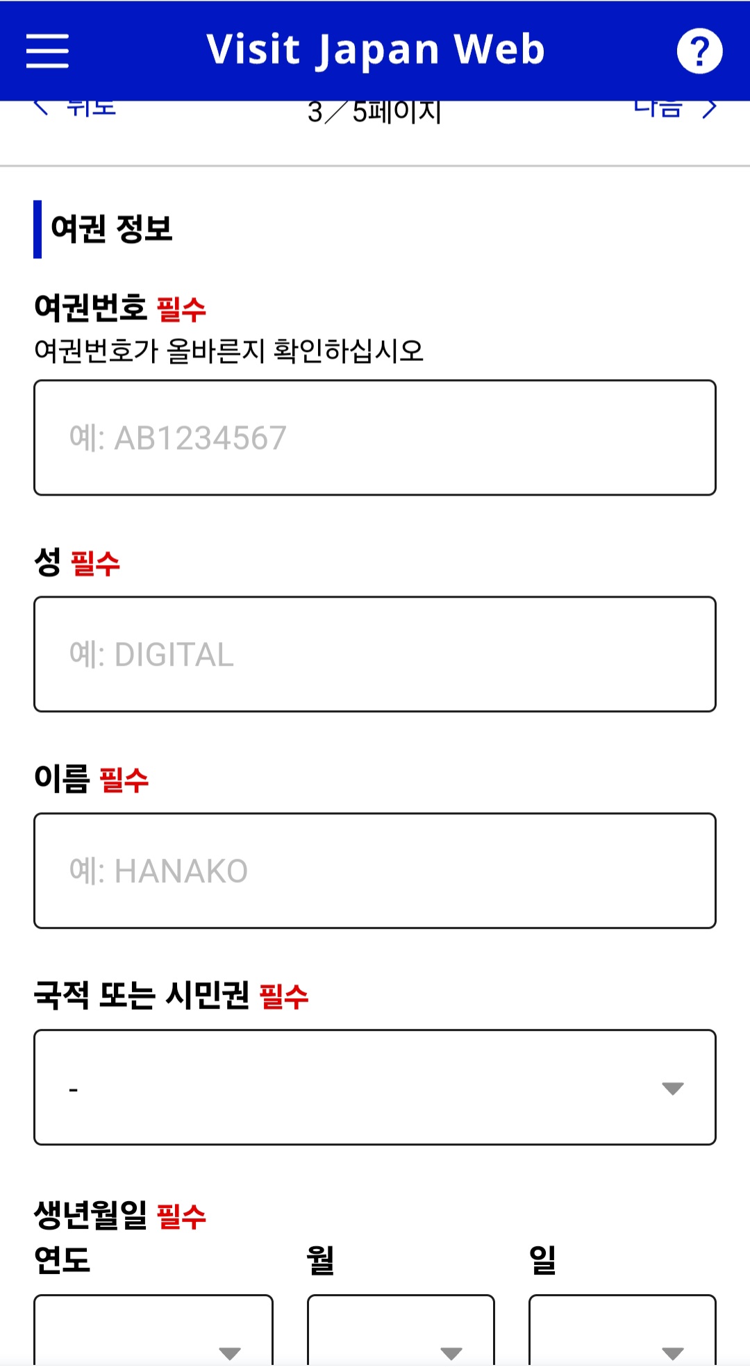 3. 비짓 재팬 웹 등록 절차