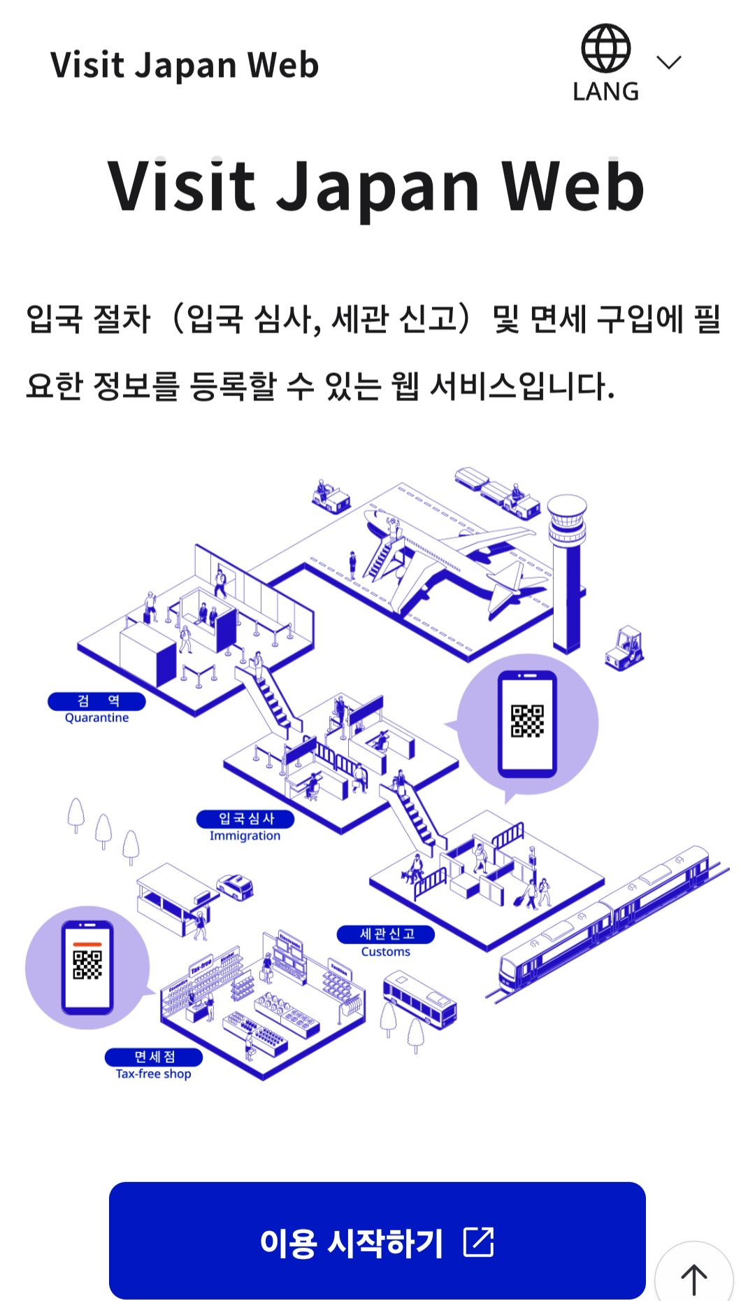 비짓 재팬 웹은 일본 정부에서 제공하는 온라인 입국 수속 서비스로, 입국 심사, 세관 신고, 면세 구매 등을 사전에 등록하여 입국 절차를 간소화할 수 있습니다. 이를 통해 공항에서의 대기 시간을 줄이고, 원활한 입국을 도와줍니다.