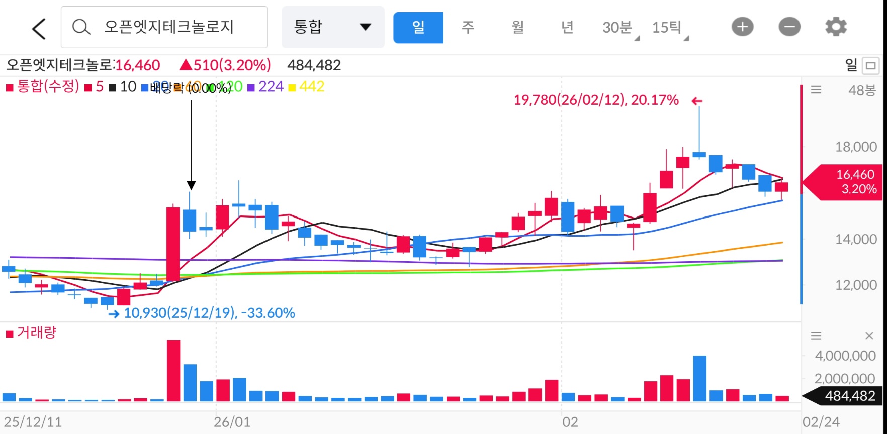 2026.02.24 - [오늘의 머니테크/오늘의 주식일기] - 오픈엣지테크놀로지 주가 분석|수급·거래처·IP 독점력 정리