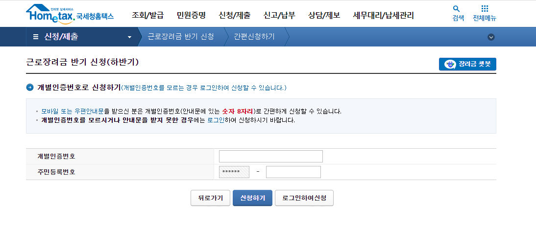2023년 근로장려금 정기/반기 신청기간
